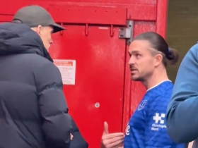 埃弗顿战胜曼联后,图赫尔被拍到和格拉利什进行了交谈