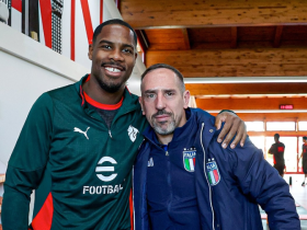 米兰官方欢迎里贝里造访米兰内洛,并发布其与迈尼昂合影