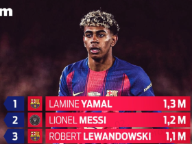 2025年球衣销量:亚马尔力压梅罗排第一;皇萨塔俱乐部前三