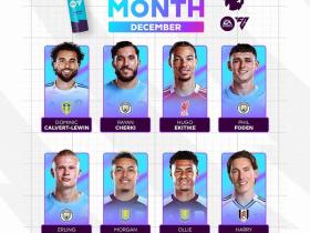 英超12月最佳球员候选:哈兰德、埃基蒂克、罗杰斯在列