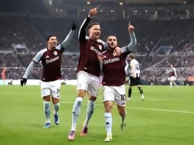 维拉2-0客胜纽卡,布恩迪亚远射破门,沃特金斯头球建功
