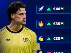 德转意甲本赛季身价涨幅最高11人阵容:帕斯暴涨3000万欧领衔