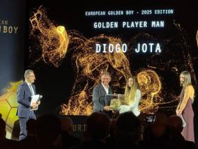 温情瞬间,若塔遗孀代领金童奖年度金球员奖