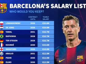 德转列巴萨队内年薪:莱万超2000万欧第1,亚马尔1670万第3