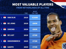 德转列荷兰球员历史身价榜:范戴克第1,德容、德利赫特在列