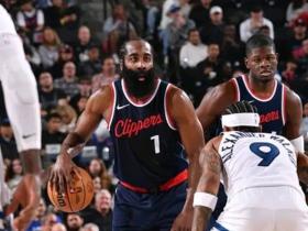 哈登10中1得5分!快船80-108惨败森林狼,兰德尔20+4+4