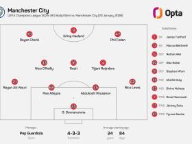 24岁84天,曼城派出队史欧冠最年轻首发阵容
