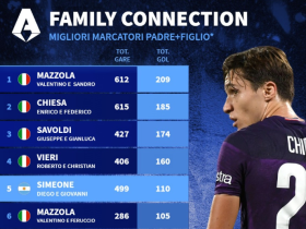 意甲历史父子进球榜:基耶萨父子第2,西蒙尼父子第5
