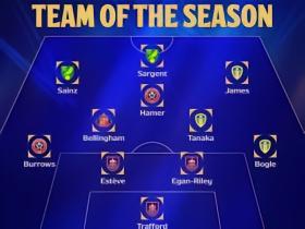 英冠赛季最佳阵:小贝林厄姆、田中碧、丹尼尔-詹姆斯在列