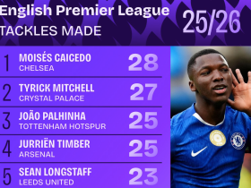 本赛季英超抢断榜前10:凯塞多第1,帕利尼亚、廷贝尔并列第3