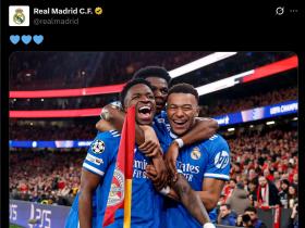 皇马社媒晒维尼修斯、姆巴佩、楚阿梅尼拥抱照💙💙💙