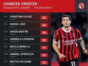 意甲关键传球排行榜:普利希奇、莱奥、阿龙-马丁列前三