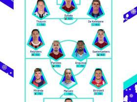 意甲官方第17轮最佳阵:迪巴拉、赖因德斯领衔,CDK在列