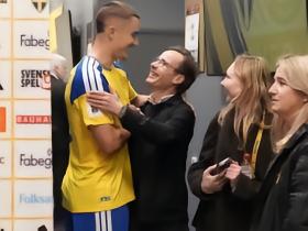 同饮庆功酒,瑞典进球功臣拉格比耶尔克赛后泼了瑞典首相一身香槟