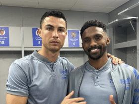 利雅得新月后卫晒与C罗合影:世界最佳,CR7