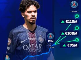 德转预热维蒂尼亚身价更新:最高1.1亿欧元,最低9500万