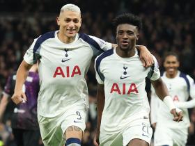 热刺3-0布拉格斯拉维亚,库杜斯、西蒙斯点射,罗梅罗造乌龙