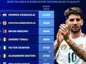 无缘世界杯球员身价TOP10:索博1亿欧居首,意大利4人上榜