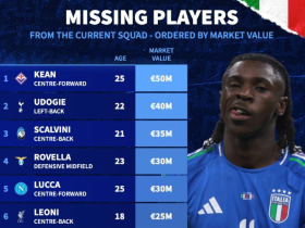 此次未入选意大利队身价前10:基恩5000万欧第1,莱昂尼在列