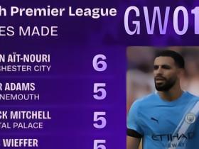 英超首轮抢断榜:艾特-努里6次居首,凯塞多5次位居第二