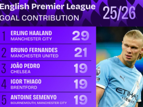 本赛季英超参与进球榜:哈兰德29球居首,B费21球次席