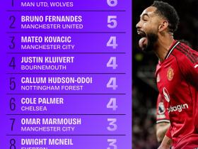 上赛季至今英超禁区外进球球员榜:库尼亚6球领跑,B费5球第二