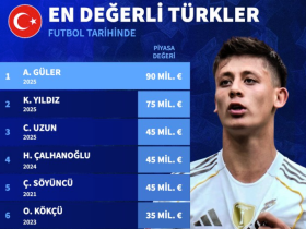德转列土耳其球员历史身价榜:居莱尔9000万欧元高居第一