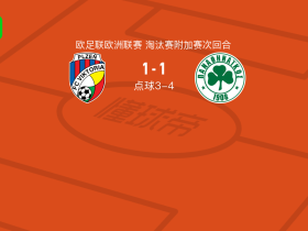 90分钟战报:比尔森胜利1-1战平帕纳辛奈科斯,双方进入加时赛