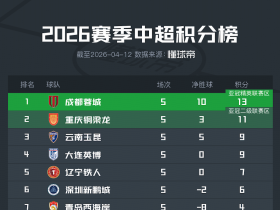 中超积分榜:蓉城绝杀继续领跑,申花积分转正,四队仍负分