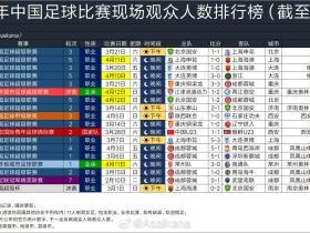 中超第5轮观众总人数位列中超历史第3,上海德比60141人居首