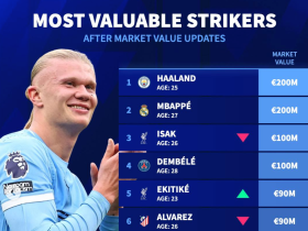德转前锋身价前10:哈兰德、姆巴佩2亿欧领衔,伊萨克1亿第3