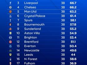 天空预测英超排名:阿森纳夺冠,曼城第二利物浦第三曼联第五