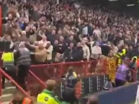 米尔沃尔球迷“卧底”主队看台,绝平后想与本队远征军庆祝反被揍