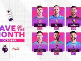 英超10月最佳扑救候选:维卡里奥、迪恩-亨德森、泽尔斯在列