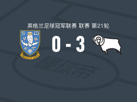 德比郡3-0大胜谢周三,帕特里克-阿杰芒两球,利亚姆-汤普森破门