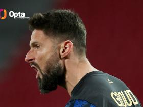 不老松+1,吉鲁成历史第7位35岁后欧战进球数超10球的球员