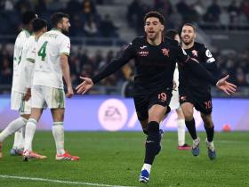 意大利杯都灵3-2罗马晋级八强,切-亚当斯双响,伊尔克汗绝杀