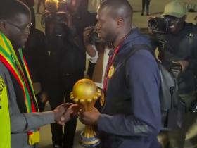 凯旋,夺冠后的塞内加尔全队在机场受到塞内加尔总统热烈欢迎