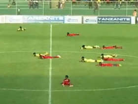 坦桑尼亚联赛大量蜜蜂飞入球场,球员们趴在地上以防被蛰