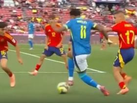 半场:西班牙U20 0-0巴西U20,克鲁斯中柱,路易吉进球被吹