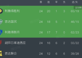 沙特积分榜:利雅得胜利2分优势领跑,利雅得新月位居第三