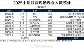 中超第29轮观众人数:成都蓉城主场41242人居首,场均26369人