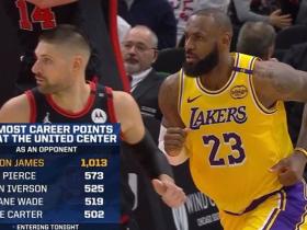 客战公牛球员总得分榜:詹姆斯1013分断档领先,皮尔斯573分第2