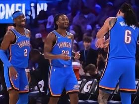雷霆146-111狂胜爵士,霍姆格伦21+7,亚历山大20分