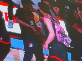 开朗,杨瀚森在开拓者球迷嘉年华上背粉色小书包跳起了舞
