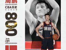里程碑!周鹏职业生涯出场次数达800场,位列CBA历史首位