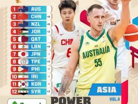 世预赛最新一期亚大区实力榜:中国男篮升至第2,韩国倒数第2